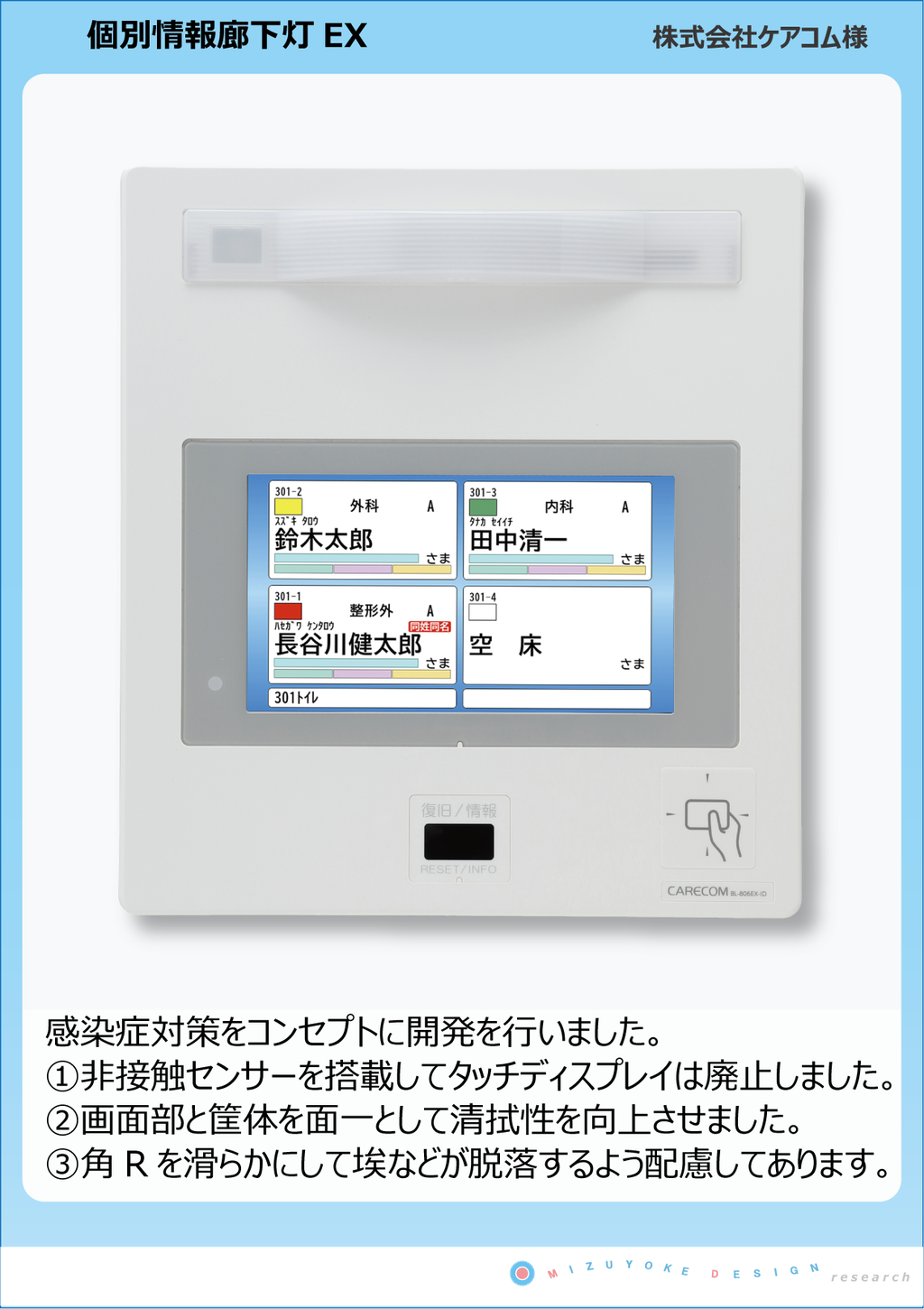 これまでの操作UIを大きく見直す必要もあり、製造コストの上昇もあり得ます。しかし避けては通れない課題の1つです。例えば、ボタン部の形状を工夫するだけでも清掃性はよくなることがあります。成形品のシボ処理も清拭性の観点からは逆効果です。タッチディスプレイをやめて、非接触センサーや音声入力方式とすれば、「触れる」というリスクはなくなります。特に医療機器では、重要視される要求事項の1つです。
