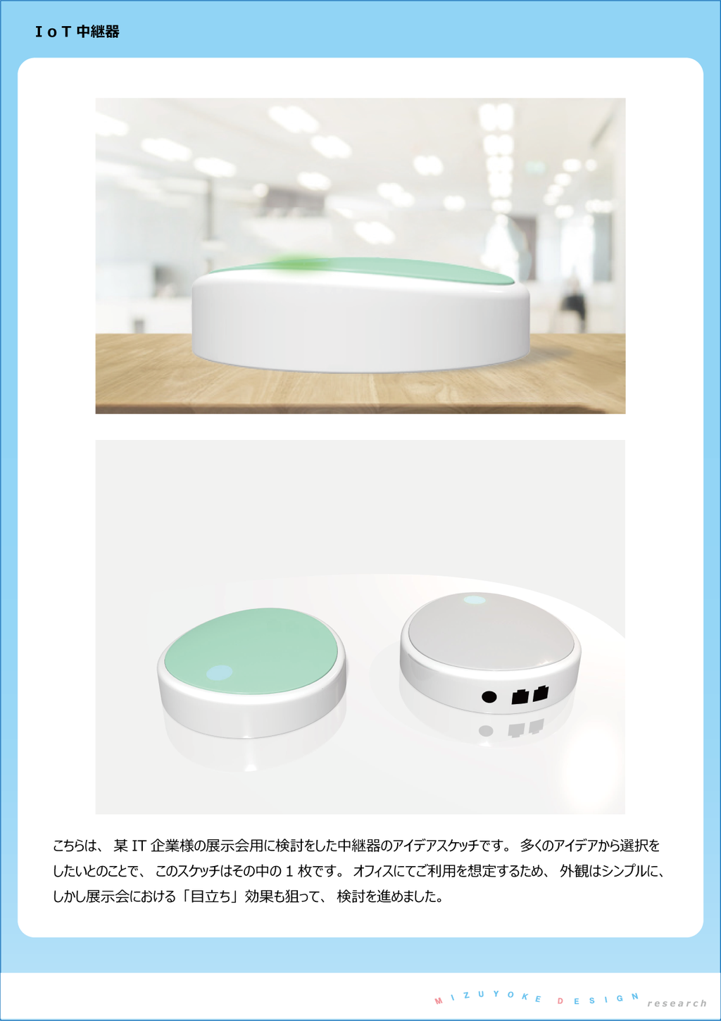 弊社では、プロダクトデザイン(外観)と画面デザイン(GUI)の両方を制作しています。近年においては、タッチディスプレイで操作を行う製品が多い為、プロダクトデザインと画面デザインを同時に検討することは、ユーザビリティに配慮をする上でも大変重要です。また、企画中の商品が使われているシーンを描くことも多くあります。開発の初期段階で、商品ご利用イメージを確認すれば、早期に問題点などに気づくことができます。